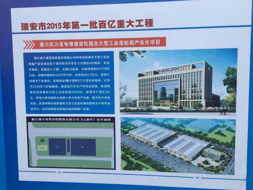 通力風電齒輪箱及大型重載齒輪箱產(chǎn)業(yè)化項目位于瑞安經(jīng)濟開發(fā)區(qū)飛云新區(qū)4號地塊,總用地116畝,是瑞安市百億投資重大項目之一,是浙江省重大產(chǎn)業(yè)項目。該項目建成后用于生產(chǎn)風電齒輪箱、軌道用驅動齒輪箱和大型重載齒輪箱,該項目的建設能夠提升通力公司的技術創(chuàng)新能力和市場競爭力,促進公司高精密齒輪箱在國內(nèi)的推廣應用。