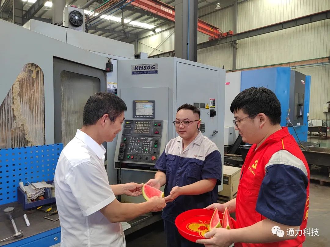活動(dòng)中,黨支部書記、工會(huì)主席項(xiàng)建設(shè)赴各車間單位,向一線職工送上西瓜、茯茶等防暑降溫物品,對(duì)他們不畏高溫、堅(jiān)守崗位、默默奉獻(xiàn)的精神表示感謝,叮囑員工上崗前保證充足休息,工作中注意身體健康,及時(shí)補(bǔ)充水分。公司全體職工在心懷感激的同時(shí)也紛紛表示,感謝公司各級(jí)領(lǐng)導(dǎo)的關(guān)心,我們將以實(shí)際行動(dòng)立足崗位,做好本職工作,為通力科技發(fā)展做出更大的貢獻(xiàn)。