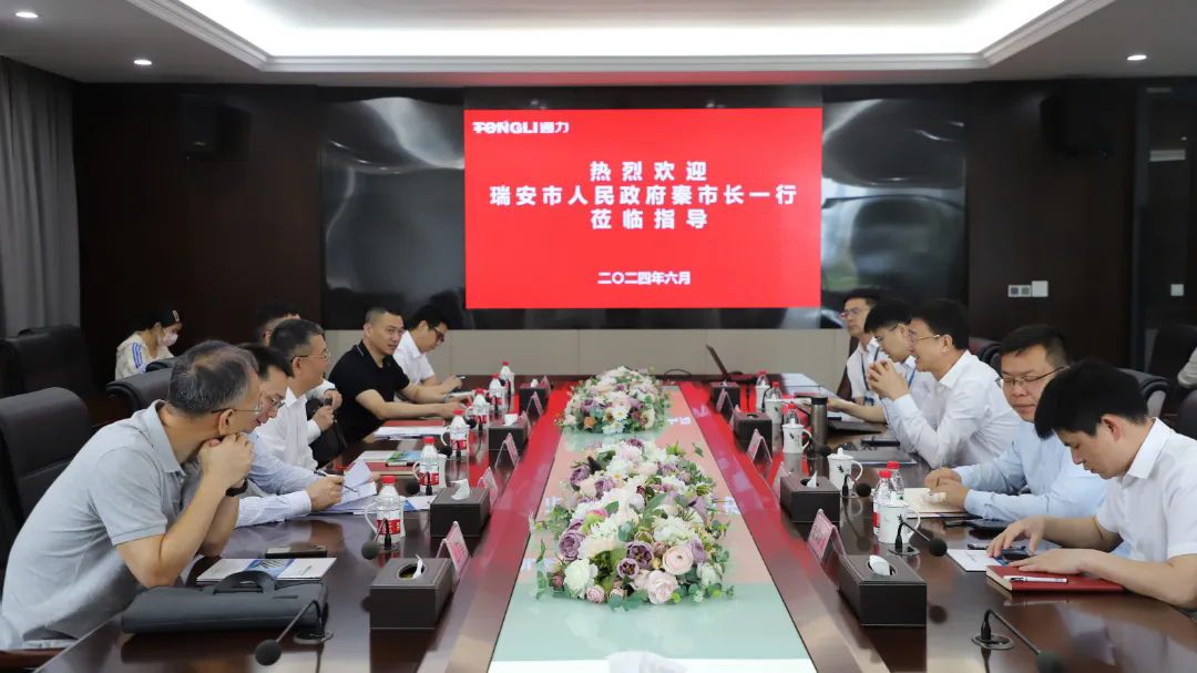 6月3日上午,瑞安市委副書記、市長秦肖率隊蒞臨通力科技開展深入實施“三化四強五爭”行動專題調(diào)研活動。通力科技董事長項建忠、總經(jīng)理項純堅等公司領(lǐng)導(dǎo)熱情接待了調(diào)研組一行。
