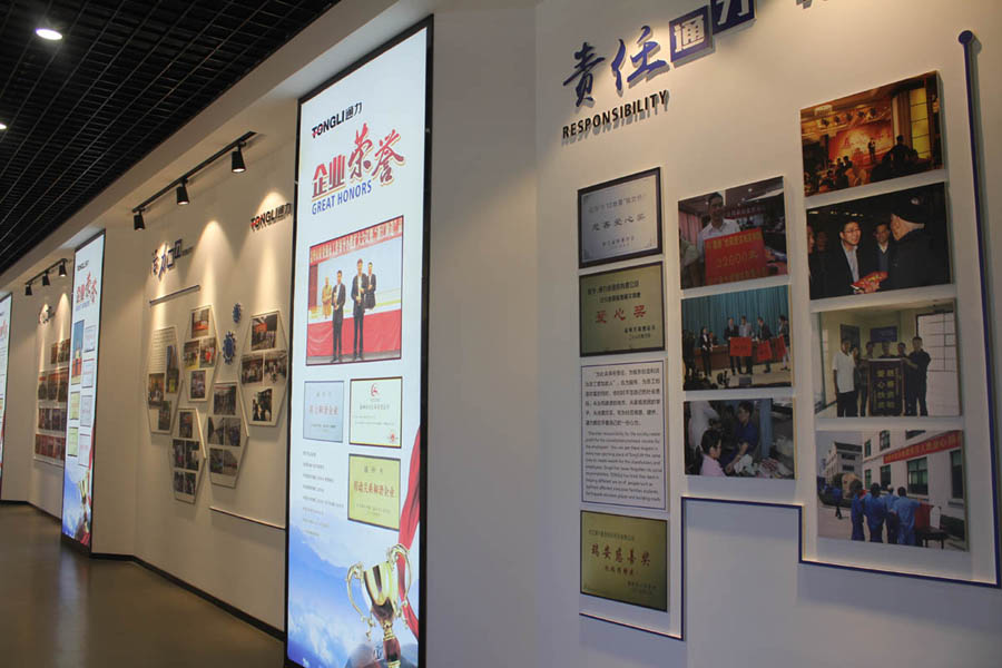 文化展廳分為黨建文化和企業(yè)文化兩大模塊。企業(yè)文化又分為、“發(fā)展歷程”、“活力通力”、“科技通力”、“榮譽通力”、“領(lǐng)導(dǎo)關(guān)懷”、“社會責(zé)任”、“國際合作”以及產(chǎn)品展示等內(nèi)容。企業(yè)綜合文化展廳直觀、充分地展示了公司近三十年來風(fēng)雨兼程的發(fā)展道路,充分詮釋企業(yè)核心價值觀及企業(yè)的核心文化內(nèi)涵。讓來訪的客人能夠更加清晰了解通力、信任通力,合作通力。